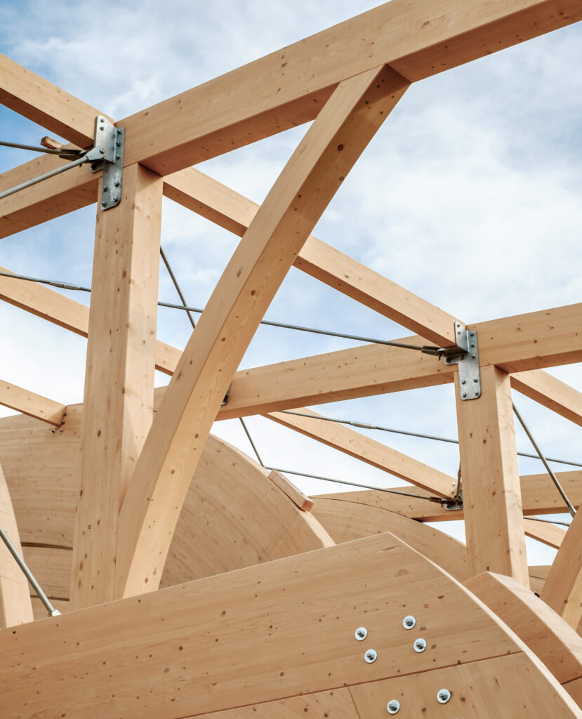 Le bois lamellé collé est un matériau renouvelable, recyclable et à faible empreinte carbone. Il stocke naturellement le CO₂ et nécessite peu d’énergie pour sa transformation. En favorisant les circuits courts et les essences locales, il s’inscrit pleinement dans une logique de construction durable.