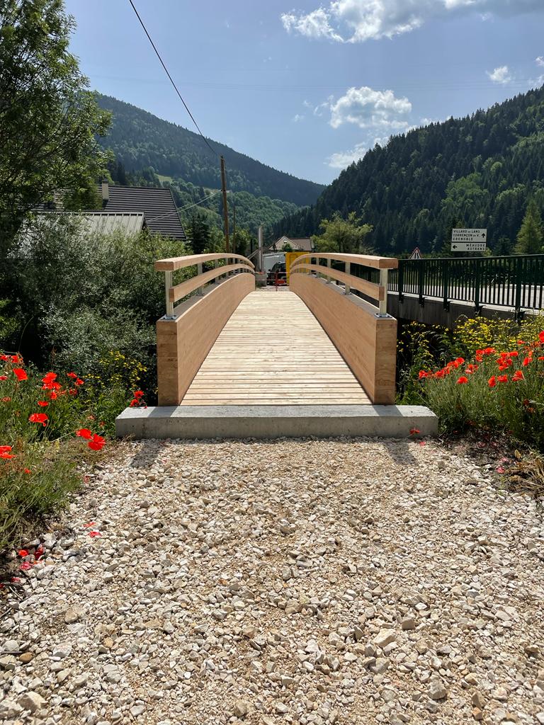 Passerelle en Bois Lamellé Collé douglas, certifiée Bois des Alpes et platelage mélèze de pays