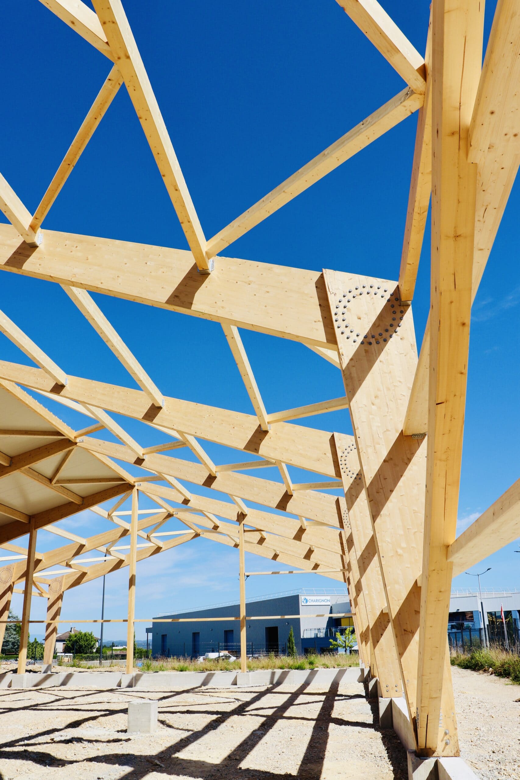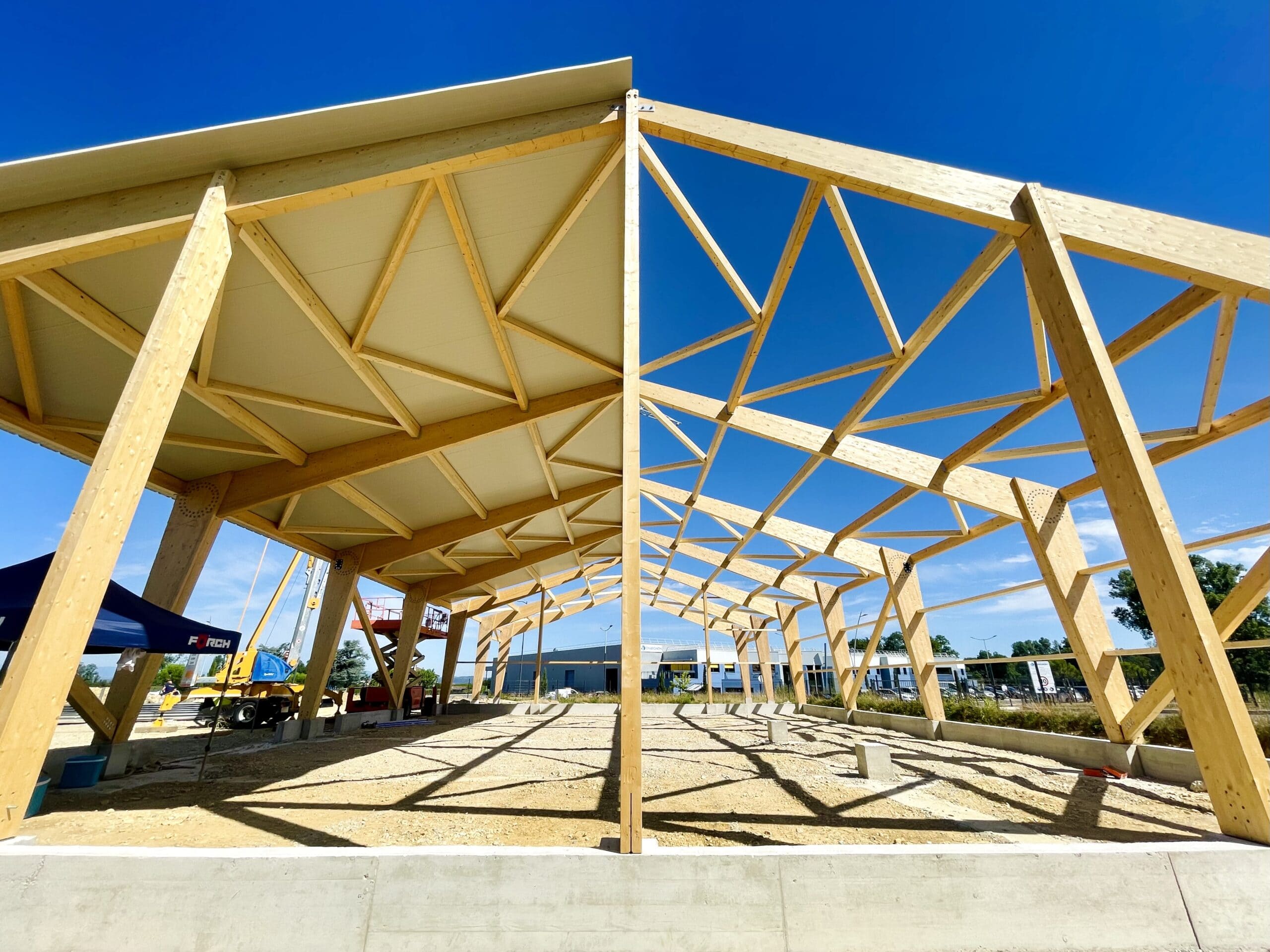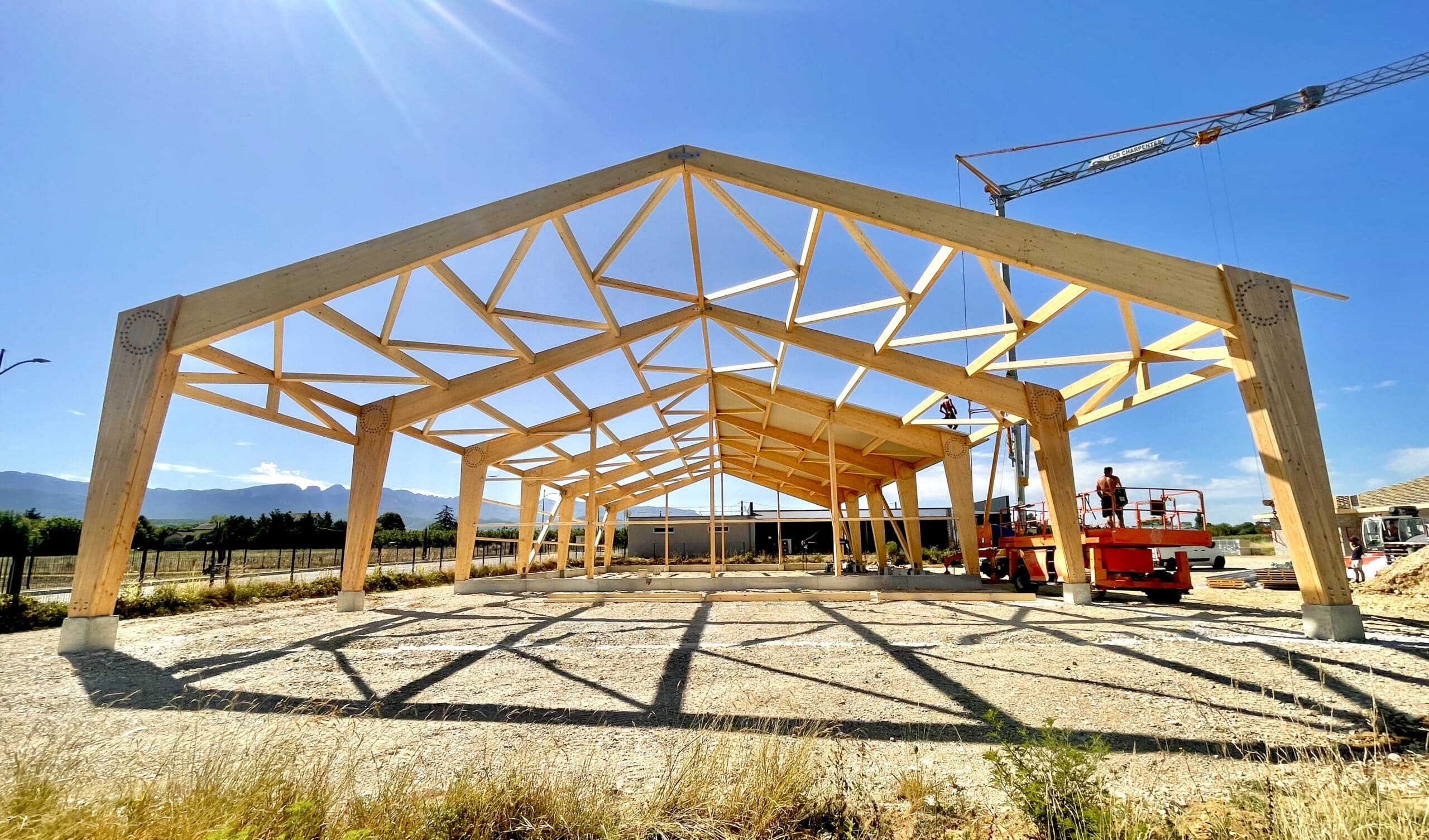 Réalisation d’un atelier de charpente ; structure composée de portiques avec couronnes de boulons, empannage et lisses recevant un bac acier simple peau.