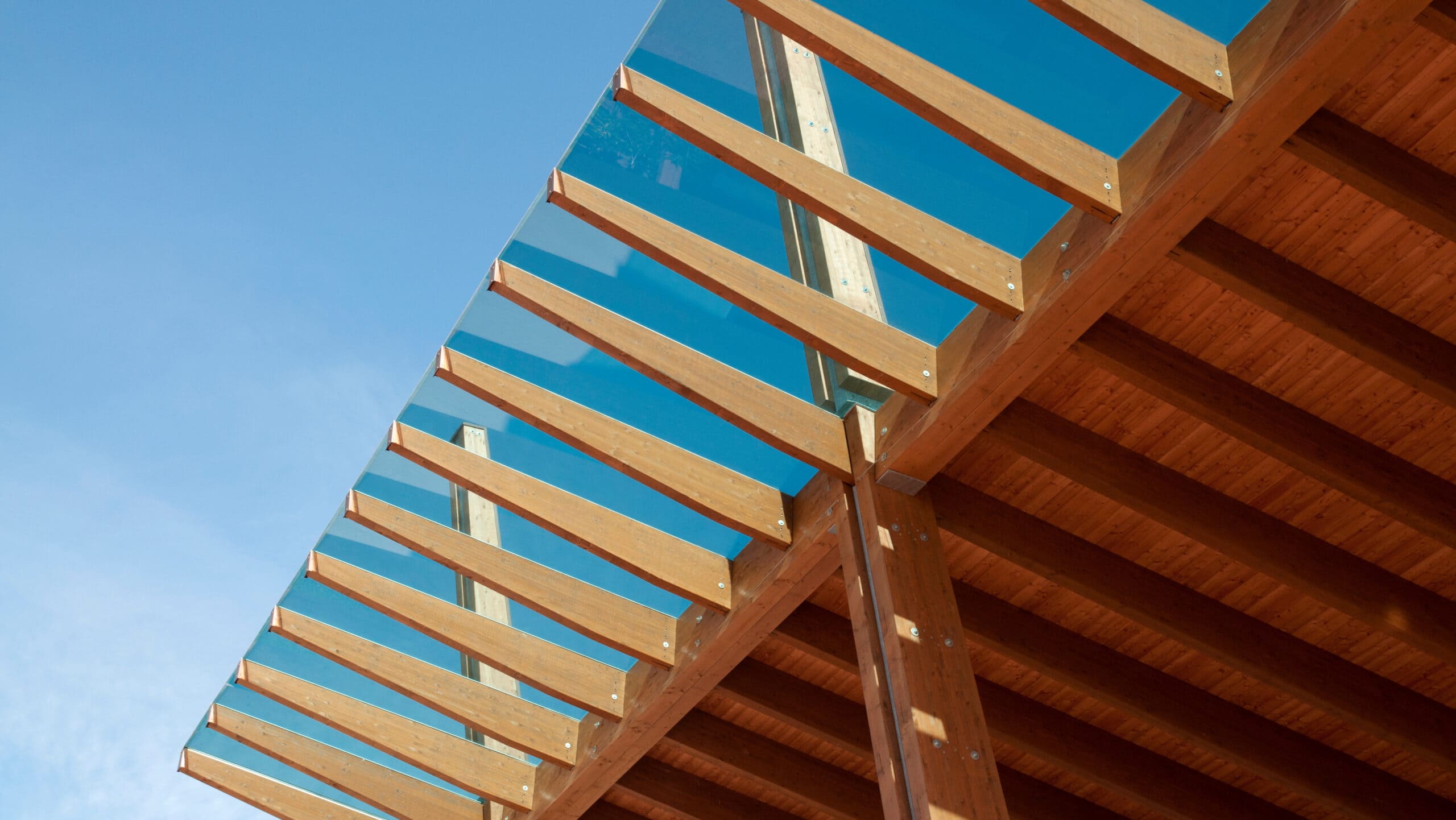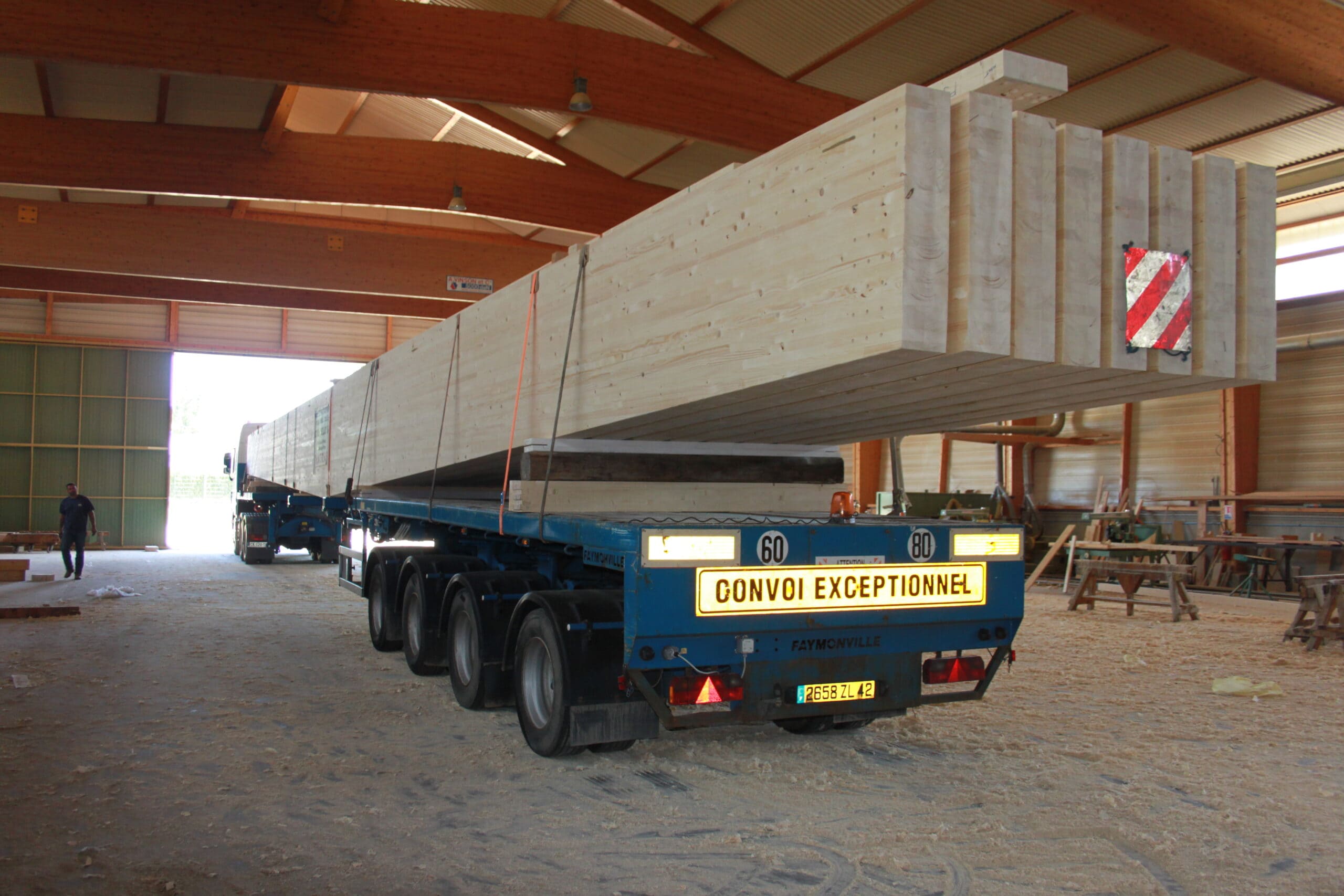 Portiques auto stables en Mélèze et Epicéa, arbalétriers en lamellé – collé Epicea. Architecte : N&BO ARCHITECTES ASSOCIES