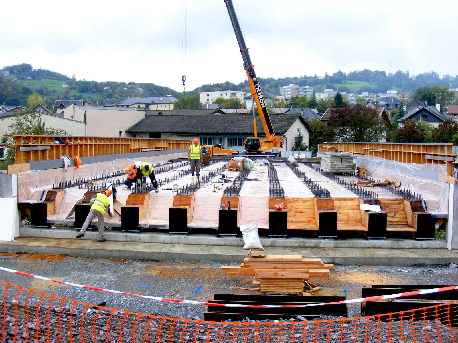 Pont routier composé d’une structure mixte bois/béton avec système collaborant, ouvrage unique en France. Il est constitué de 180m3 de douglas dont 9 poutres GL28c de 40m de long. Récompenses : coup de cœur du public – Prix régional de la construction Bois Auvergne-Rhône-Alpes (2017). Maîtrise d’œuvre – architectes : BG Ingénieurs Conseils, Agence d’Aix-les-Bains et les Pressés de la Cité. Bureau d’études bois : Tekto ingenierie, Sib solutions. Photos © Grand Chambéry Didier Gourbin