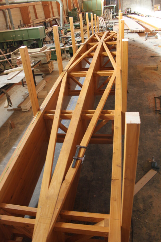 Notre entreprise taille des charpentes depuis sa création, que ce soit des pièces cintrées sur épures ou encore des poutres droites dans une machine CNC.